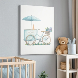 A pintura "Doces Lembranças do Verão" é uma composição encantadora que evoca memórias nostálgicas dos dias quentes de verão. Ela retrata uma bicicleta com sorvete em um carrinho estiloso, decorado com um buquê de flores frescas e um guarda-chuva em tons pastéis. Toda a peça é mantida em um estilo delicado de aquarela, conferindo à obra leveza e charme sutil.