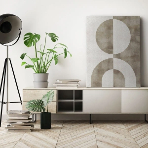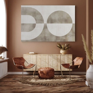 Quadro em tela - Uma pintura abstrata em tons de bege com formas geométricas e simetria. - 70x50cm - Semelhanças e diferenças - Decoração de parede moderna para a sala de estar e quarto ARTTOR