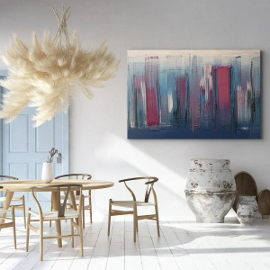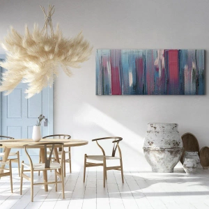 Quadro em tela - Formas verticais abstratas em tons de azul e vermelho - 70x50cm - Composição vertical em azul e vermelho - Decoração de parede moderna para a sala de estar e quarto ARTTOR