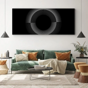 Quadro em tela - Círculo gráfico com raios em preto e branco - 70x50cm - Sol preto - Decoração de parede moderna para a sala de estar e quarto ARTTOR