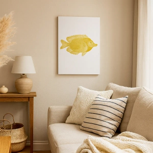 A obra "Peixe dourado vintage em fundo claro" é perfeita para espaços como sala de estar, quarto, escritório ou escritório. Seu design minimalista e cores delicadas trazem uma sensação de calma e estética equilibrada ao interior. É uma decoração que pode se tornar tanto o ponto focal do arranjo quanto um toque sutil que adiciona personalidade.