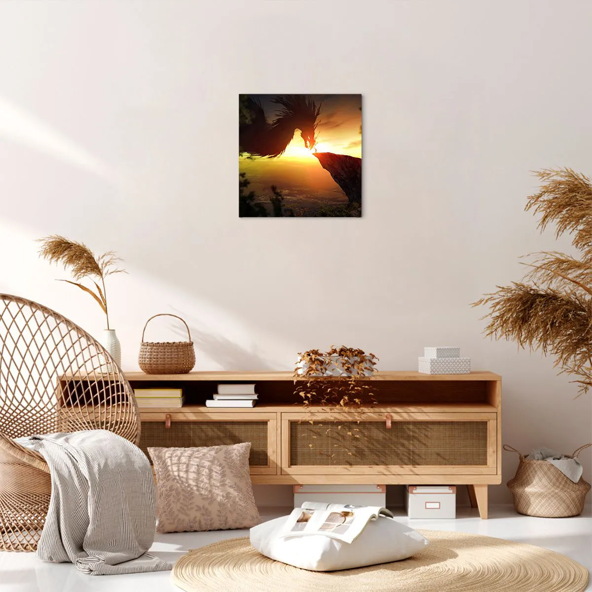 A tela é esticada na moldura. Os lados e bordas são impressos para criar uma continuação da imagem. O quadro está pronto para ser pendurado na parede. Cada produto tem um gancho ligado à moldura e um conjunto de montagem (parafuso + cavilha).