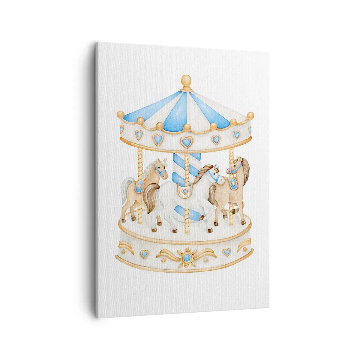• Cavalos, Carrossel, Infantil, Para crianças, Pastel, Vintage e retrô, Animais, Para o quarto das crianças Branco, Marrom, Azul, Vertical