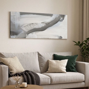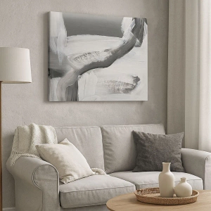 Quadro em tela - Abstração cinza e branca com linhas dinâmicas - 70x50cm - Um movimento decisivo - Decoração de parede moderna para a sala de estar e quarto ARTTOR