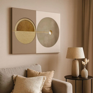 Quadro em tela - Círculos abstratos em tons de dourado e bege - 70x50cm - Equilíbrio perfeito - Decoração de parede moderna para a sala de estar e quarto ARTTOR
