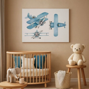 Quadro em tela - Aviões retrô azuis - 70x50cm - Um vencedor nato - Decoração de parede moderna para a sala de estar e quarto ARTTOR