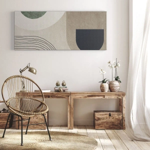 A pintura em tela "A Suavidade do Oval" é uma composição única que retrata formas geométricas em tons de bege, verde e azul-marinho. Seu design minimalista e cores sutis conferem aos interiores um estilo e harmonia únicos.