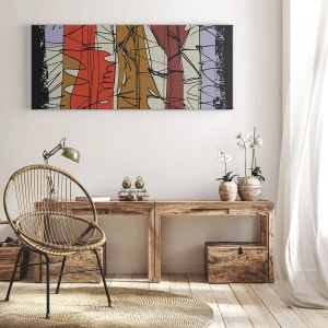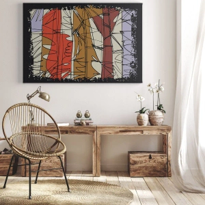A tela é esticada na moldura. Os lados e bordas são impressos para criar uma continuação da imagem. O quadro está pronto para ser pendurado na parede. Cada produto tem um gancho ligado à moldura e um conjunto de montagem (parafuso + cavilha).