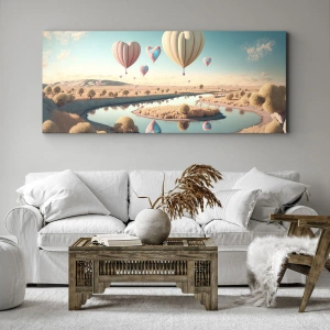 A tela é esticada na moldura. Os lados e bordas são impressos para criar uma continuação da imagem. O quadro está pronto para ser pendurado na parede. Cada produto tem um gancho ligado à moldura e um conjunto de montagem (parafuso + cavilha).