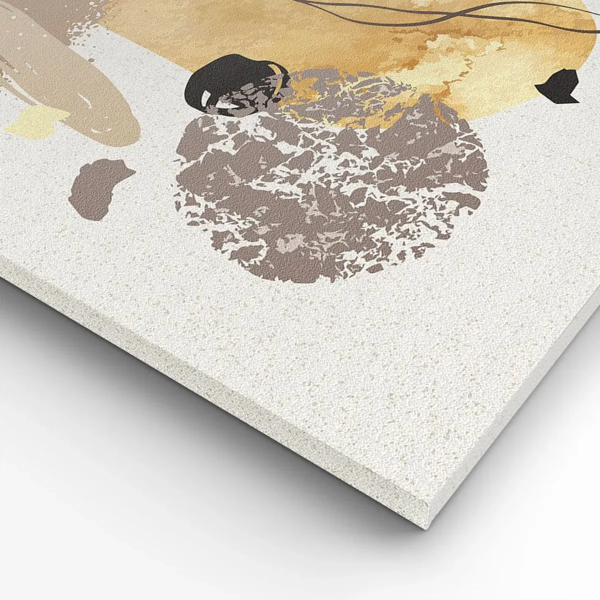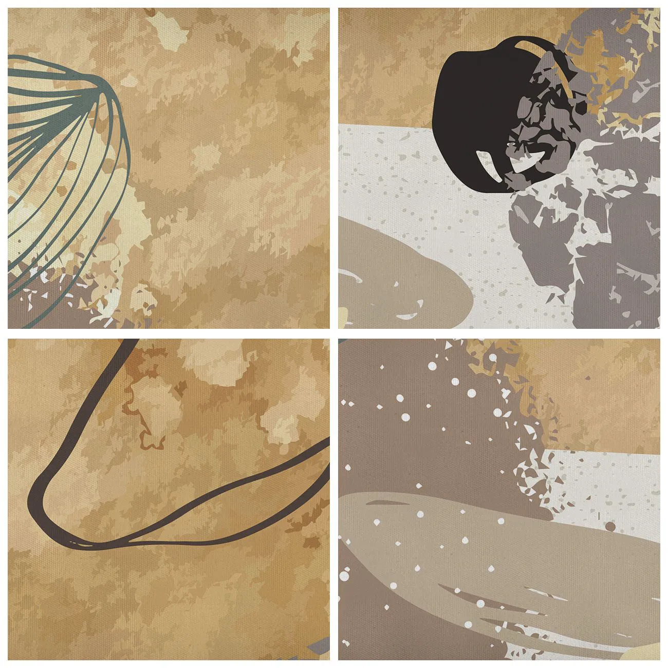 O motivo de formas abstratas simboliza criatividade, equilíbrio e modernidade. Tons de bege e amarelo conferem aconchego à composição, enquanto elementos geométricos enfatizam seu caráter moderno. É a escolha perfeita para quem aprecia decorações de parede que trazem delicadeza e aconchego ao interior.