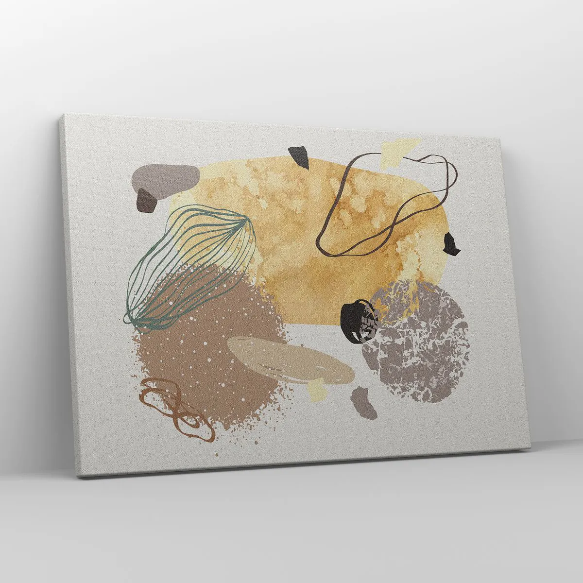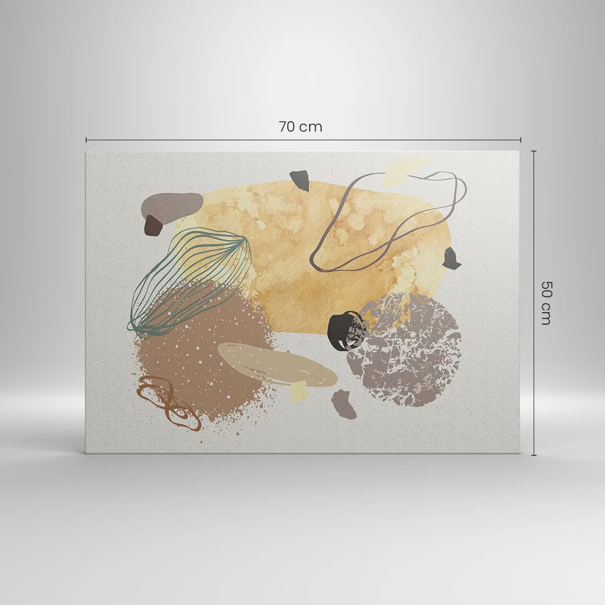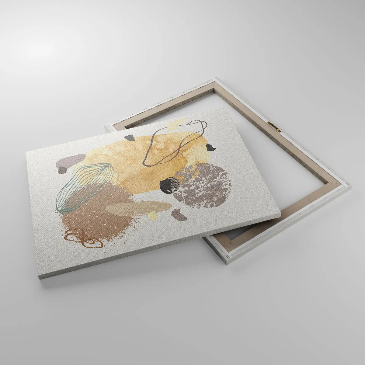 Quadro em tela - Uma composição de formas abstratas em bege e amarelo. - 70x50cm - Plumcologia aplicada - Decoração de parede moderna para a sala de estar e quarto ARTTOR