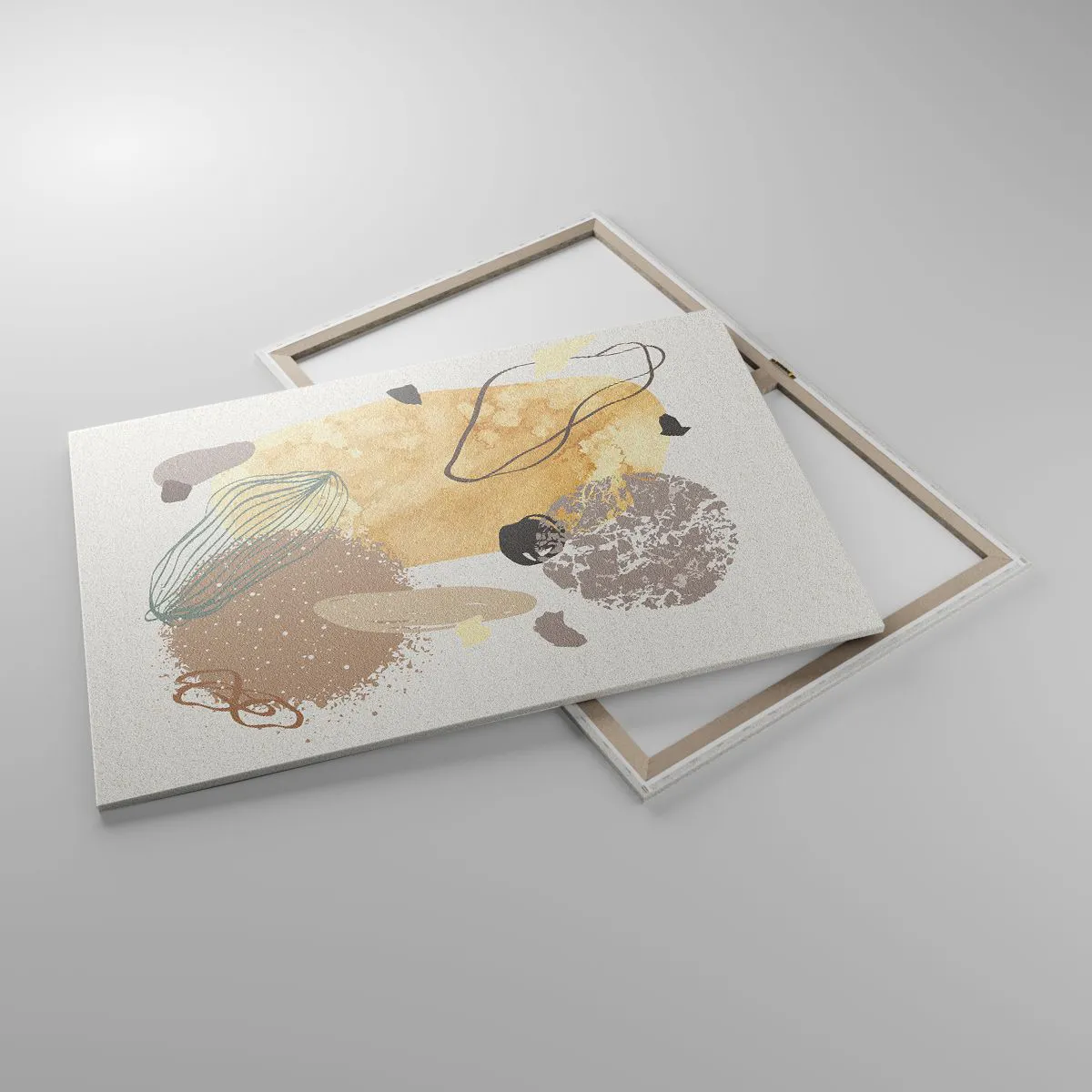 A tela é esticada na moldura. Os lados e bordas são impressos para criar uma continuação da imagem. O quadro está pronto para ser pendurado na parede. Cada produto tem um gancho ligado à moldura e um conjunto de montagem (parafuso + cavilha).
