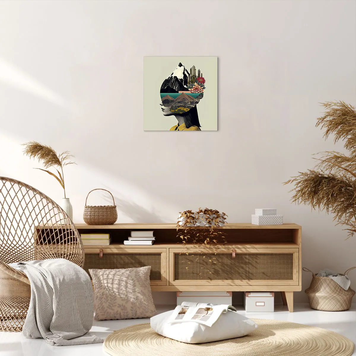 A tela é esticada na moldura. Os lados e bordas são impressos para criar uma continuação da imagem. O quadro está pronto para ser pendurado na parede. Cada produto tem um gancho ligado à moldura e um conjunto de montagem (parafuso + cavilha).
