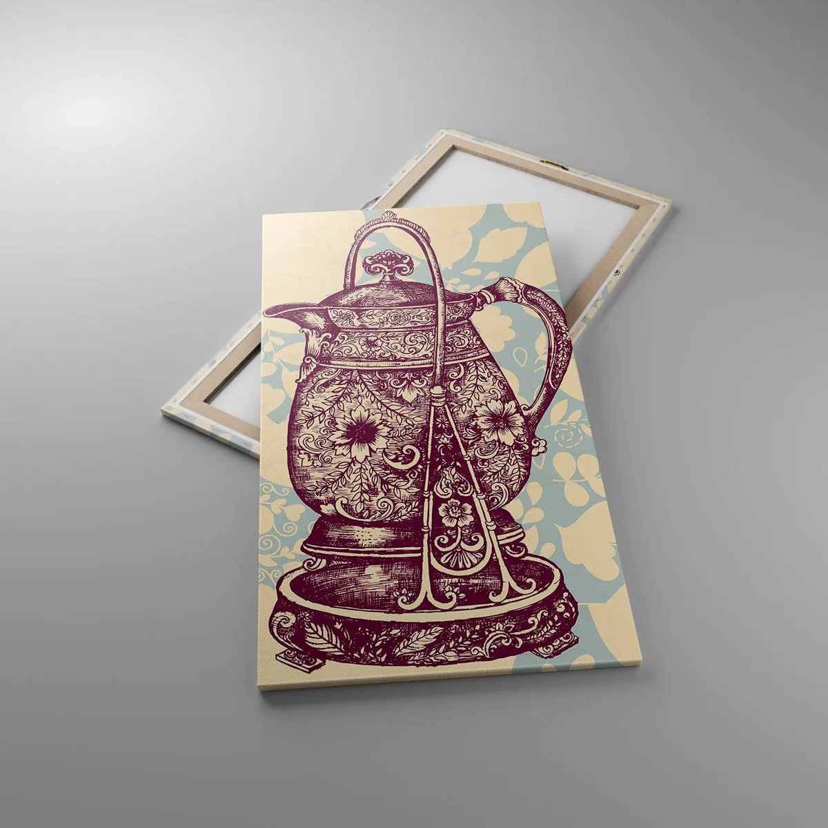 A tela é esticada na moldura. Os lados e bordas são impressos para criar uma continuação da imagem. O quadro está pronto para ser pendurado na parede. Cada produto tem um gancho ligado à moldura e um conjunto de montagem (parafuso + cavilha).