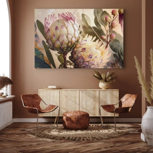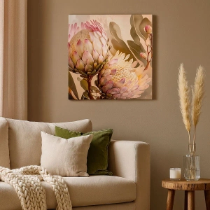 A tela é esticada na moldura. Os lados e bordas são impressos para criar uma continuação da imagem. O quadro está pronto para ser pendurado na parede. Cada produto tem um gancho ligado à moldura e um conjunto de montagem (parafuso + cavilha).