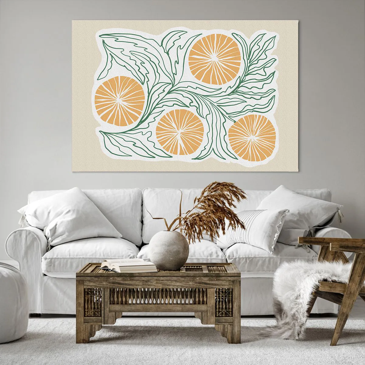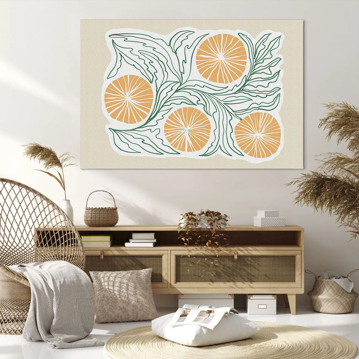• Boho, Limão, Minimalismo, Botânica, Gastronomia, Flores, Pastel, Para o escritório, Para o escritório, Para a sala de jantar, Para a cozinha, Para o hall, Para a sala de estar, Para o quarto, Branco, Laranja, Verde, Horizontal
