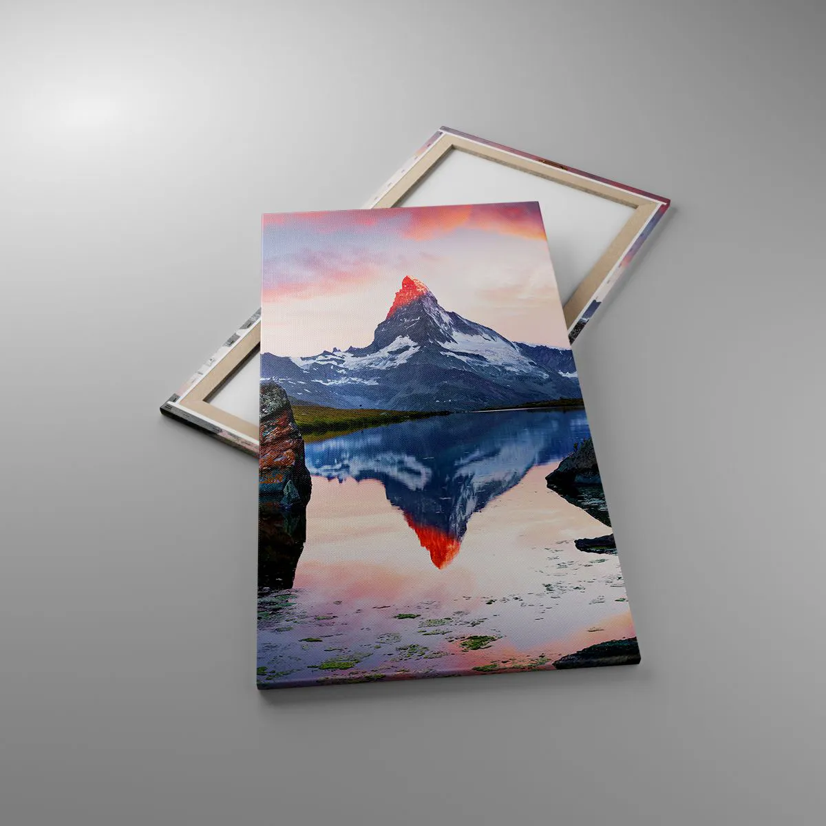A tela é esticada na moldura. Os lados e bordas são impressos para criar uma continuação da imagem. O quadro está pronto para ser pendurado na parede. Cada produto tem um gancho ligado à moldura e um conjunto de montagem (parafuso + cavilha).