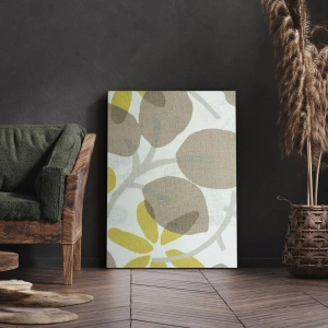 - Uma pintura abstrata moderna que retrata folhas em tons sutis de bege e amarelo. Esta pintura tem um toque leve e minimalista, perfeito para interiores com cores claras. Adiciona elegância e um toque natural a qualquer ambiente.