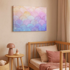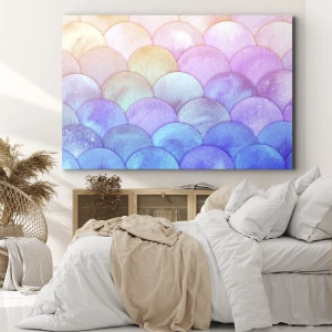 - pintura retrata escamas abstratas em tons pastéis de rosa, azul e roxo. Um complemento perfeito para interiores modernos, trazendo harmonia e sutileza.
