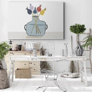 - Uma pintura sutil que retrata flores secas coloridas em um vaso sobre um fundo branco. Uma escolha perfeita para os amantes da simplicidade e da decoração natural, ela traz harmonia e estilo a qualquer interior.