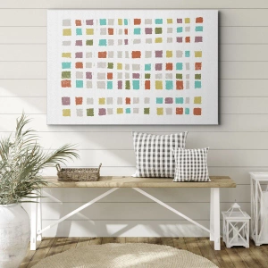 A tela é esticada na moldura. Os lados e bordas são impressos para criar uma continuação da imagem. O quadro está pronto para ser pendurado na parede. Cada produto tem um gancho ligado à moldura e um conjunto de montagem (parafuso + cavilha).