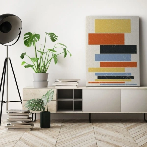 A tela é esticada na moldura. Os lados e bordas são impressos para criar uma continuação da imagem. O quadro está pronto para ser pendurado na parede. Cada produto tem um gancho ligado à moldura e um conjunto de montagem (parafuso + cavilha).