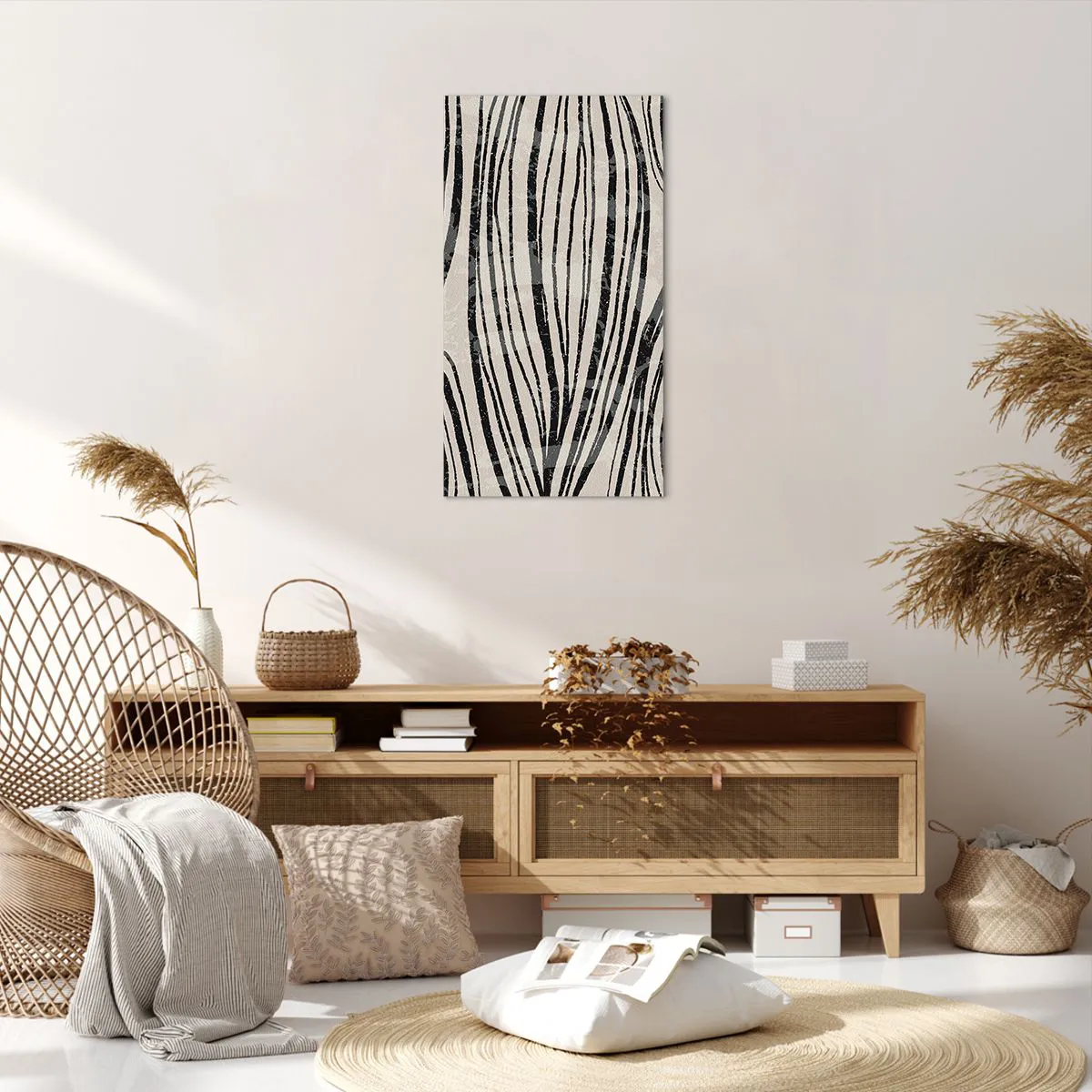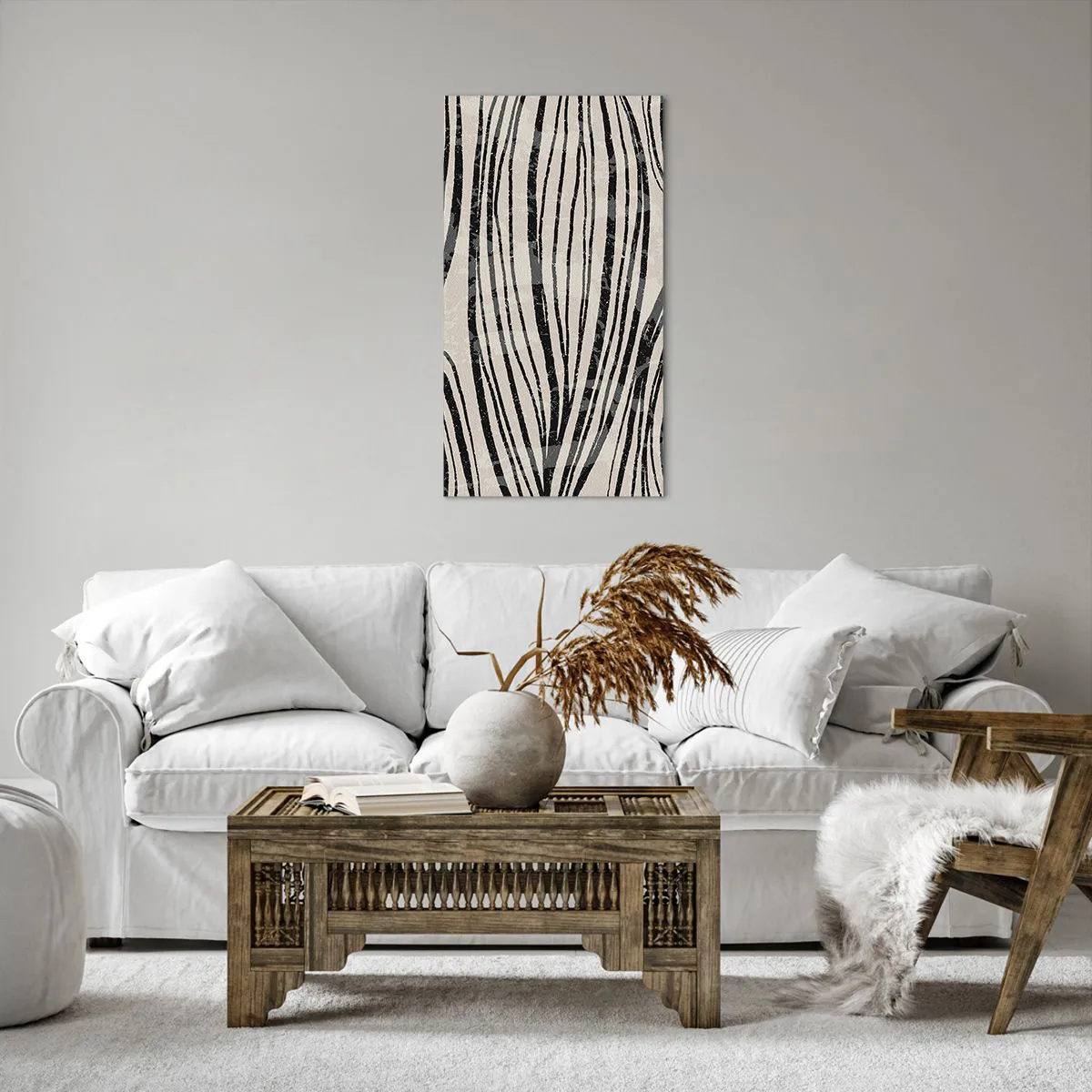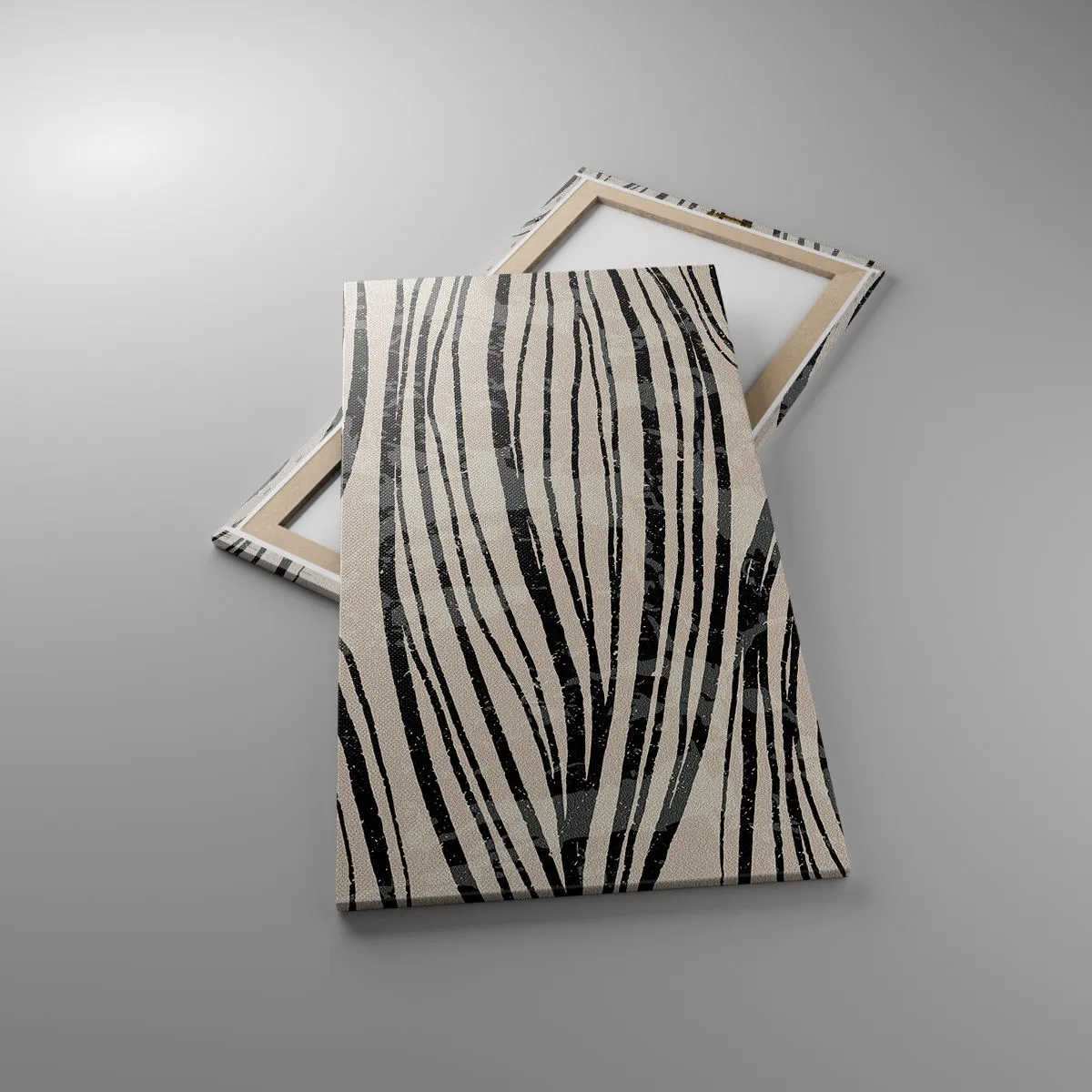 A tela é esticada na moldura. Os lados e bordas são impressos para criar uma continuação da imagem. O quadro está pronto para ser pendurado na parede. Cada produto tem um gancho ligado à moldura e um conjunto de montagem (parafuso + cavilha).