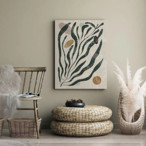 Quadro em tela - Linhas e formas orgânicas em verde e bege - 70x50cm - Entre a vegetação - Decoração de parede moderna para a sala de estar e quarto ARTTOR