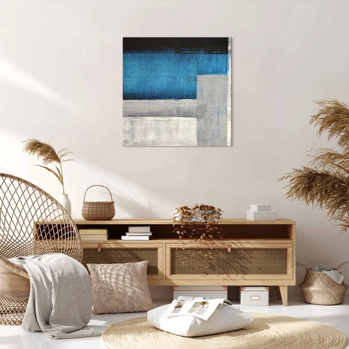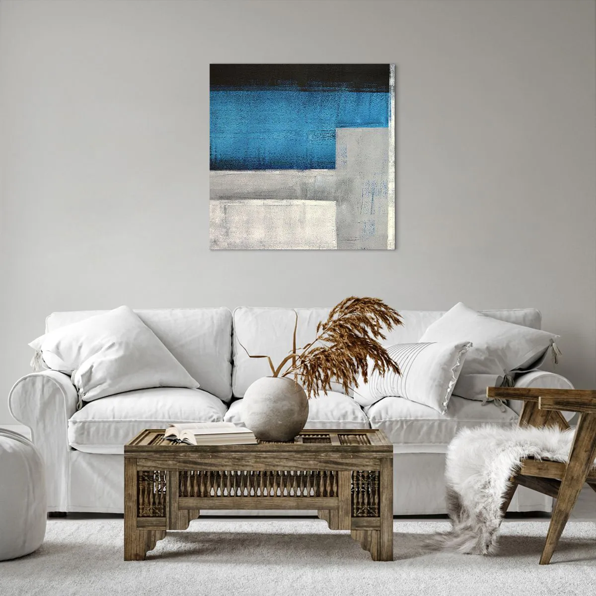 Quadro em tela - Uma composição poética de cinza e azul - 60x60 cm