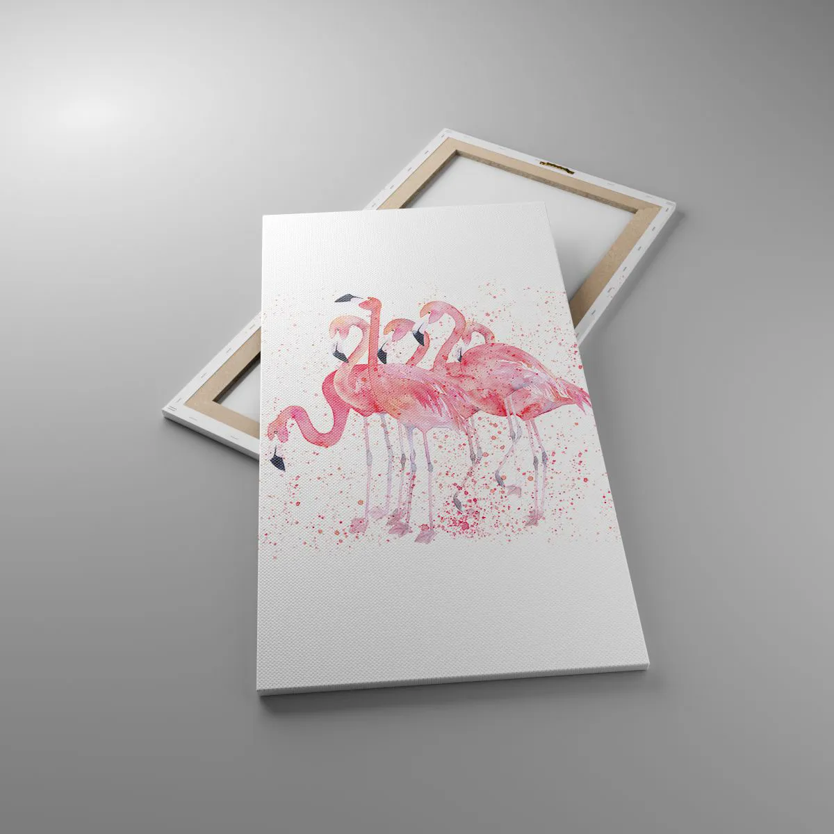 A tela é esticada na moldura. Os lados e bordas são impressos para criar uma continuação da imagem. O quadro está pronto para ser pendurado na parede. Cada produto tem um gancho ligado à moldura e um conjunto de montagem (parafuso + cavilha).