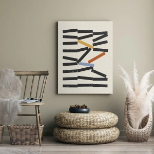 A pintura é perfeita para quem valoriza o minimalismo e os padrões geométricos. Pode ser um elemento decorativo único em uma sala de estar, quarto ou escritório. Suas cores sutis e forma simples adicionam elegância e harmonia ao interior, atraindo a atenção com seu estilo único.
