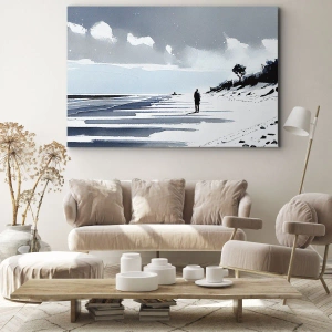 A tela é esticada na moldura. Os lados e bordas são impressos para criar uma continuação da imagem. O quadro está pronto para ser pendurado na parede. Cada produto tem um gancho ligado à moldura e um conjunto de montagem (parafuso + cavilha).