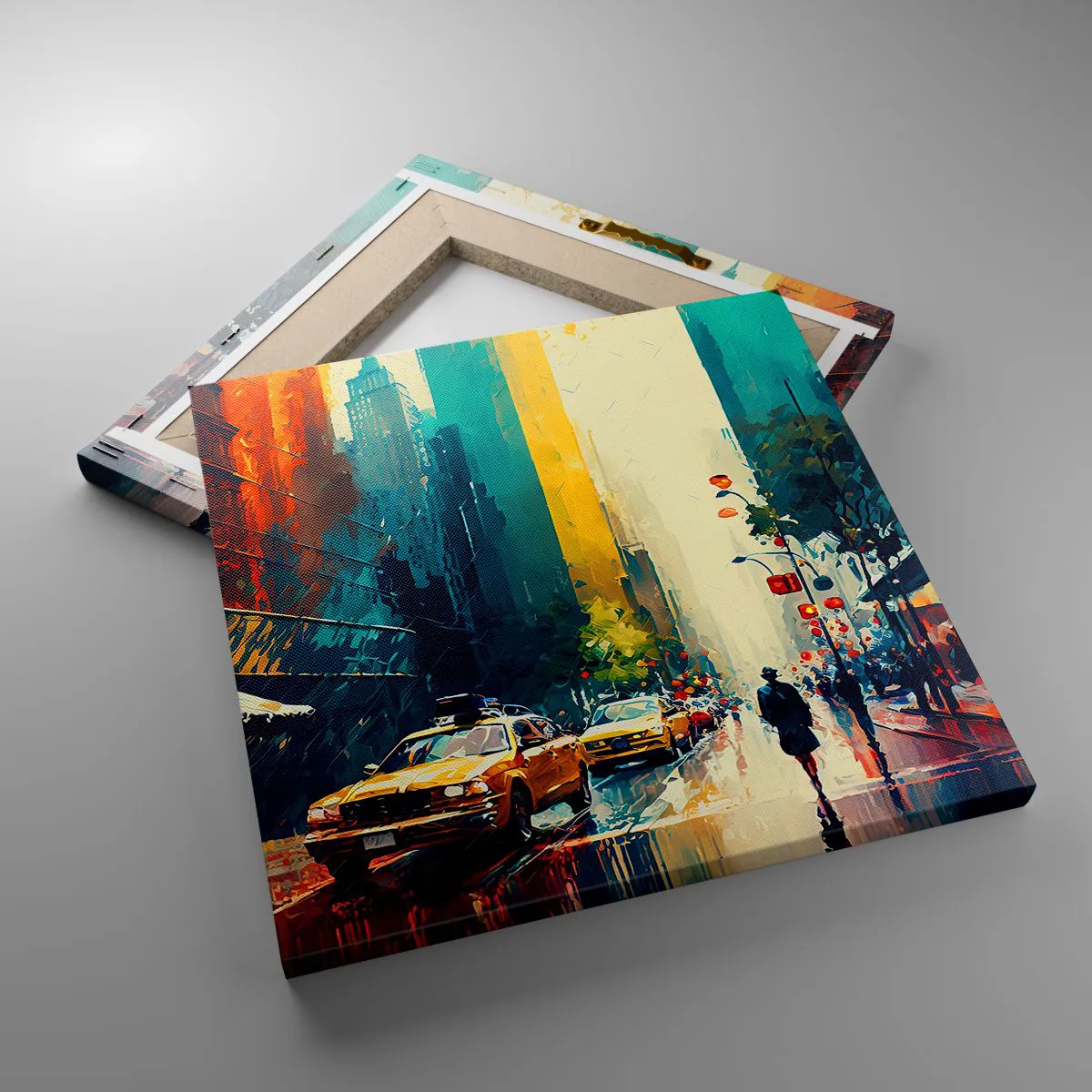 Quadro em tela - Nova York – até a chuva é colorida aqui - 30x30 cm