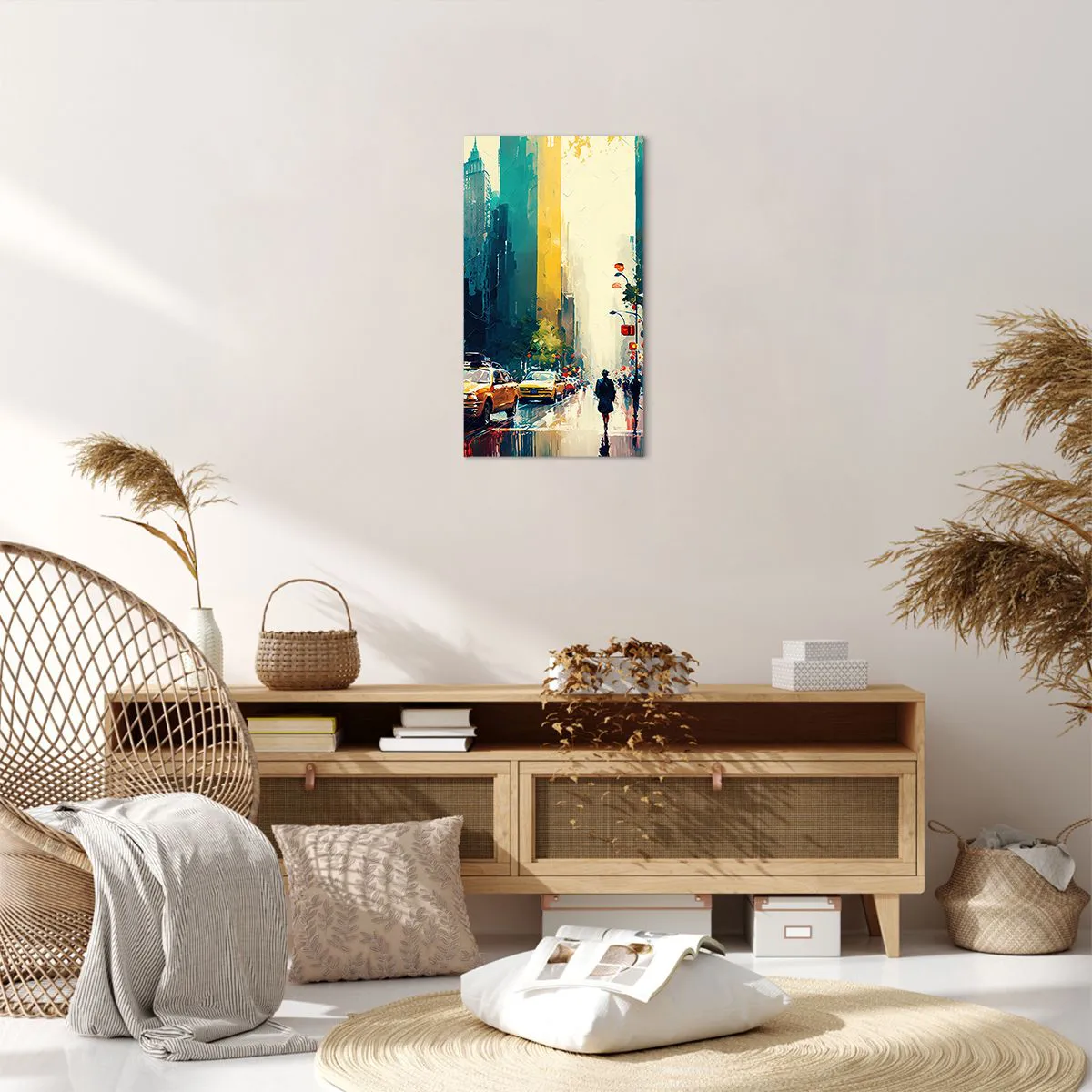 Quadro em tela - Nova York – até a chuva é colorida aqui - 45x80 cm