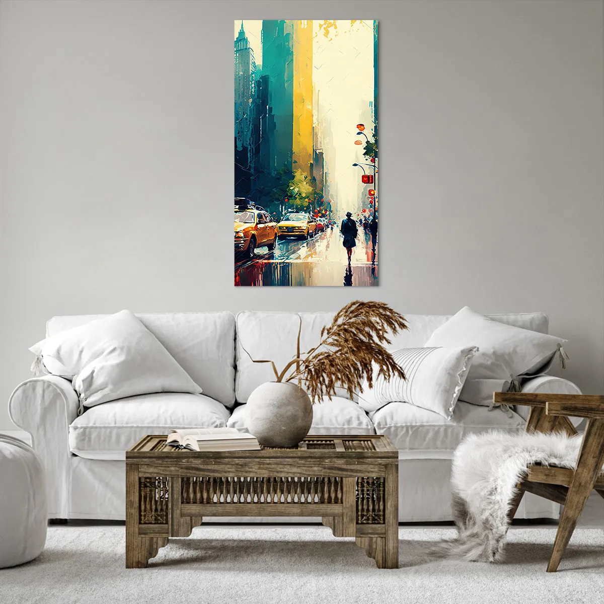 Quadro em tela - Nova York – até a chuva é colorida aqui - 65x120 cm
