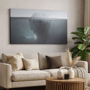 - Esta pintura retrata um iceberg na água com um mergulhador e um holofote sob a superfície. Esta composição sutil e atmosférica traz harmonia e reflexão a qualquer interior. Uma escolha ideal para amantes da arte moderna e da natureza.