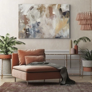 Quadro em tela - Manchas abstratas em tons suaves de bege e dourado - 70x50cm - Abstração enevoada - Decoração de parede moderna para a sala de estar e quarto ARTTOR