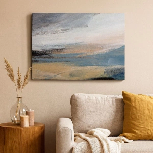 Quadro em tela - Paisagem abstrata em tons suaves de azul e bege - 70x50cm - Abstração: paisagem do norte - Decoração de parede moderna para a sala de estar e quarto ARTTOR