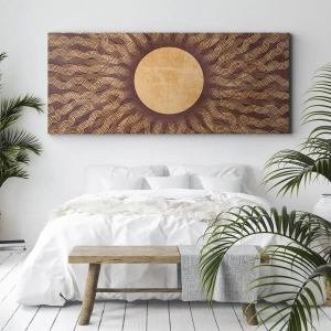 Quadro em tela - Padrão ensolarado com raios sobre um fundo em tons de marrom - 70x50cm - Ícone do sol - Decoração de parede moderna para a sala de estar e quarto ARTTOR