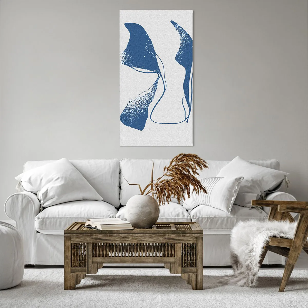 A tela é esticada na moldura. Os lados e bordas são impressos para criar uma continuação da imagem. O quadro está pronto para ser pendurado na parede. Cada produto tem um gancho ligado à moldura e um conjunto de montagem (parafuso + cavilha).