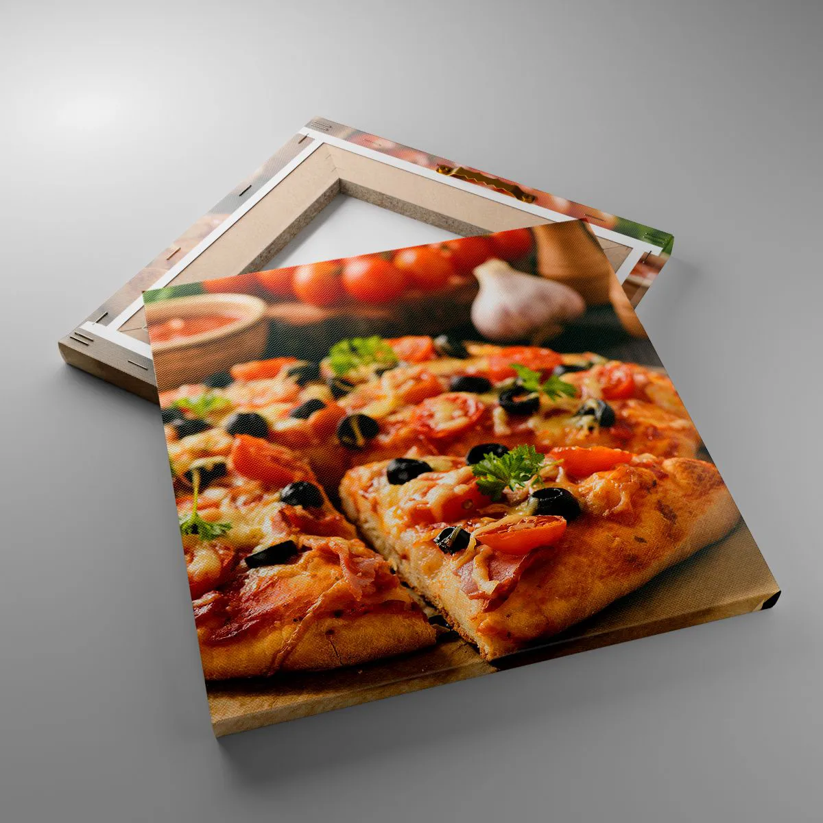 A tela é esticada na moldura. Os lados e bordas são impressos para criar uma continuação da imagem. O quadro está pronto para ser pendurado na parede. Cada produto tem um gancho ligado à moldura e um conjunto de montagem (parafuso + cavilha).