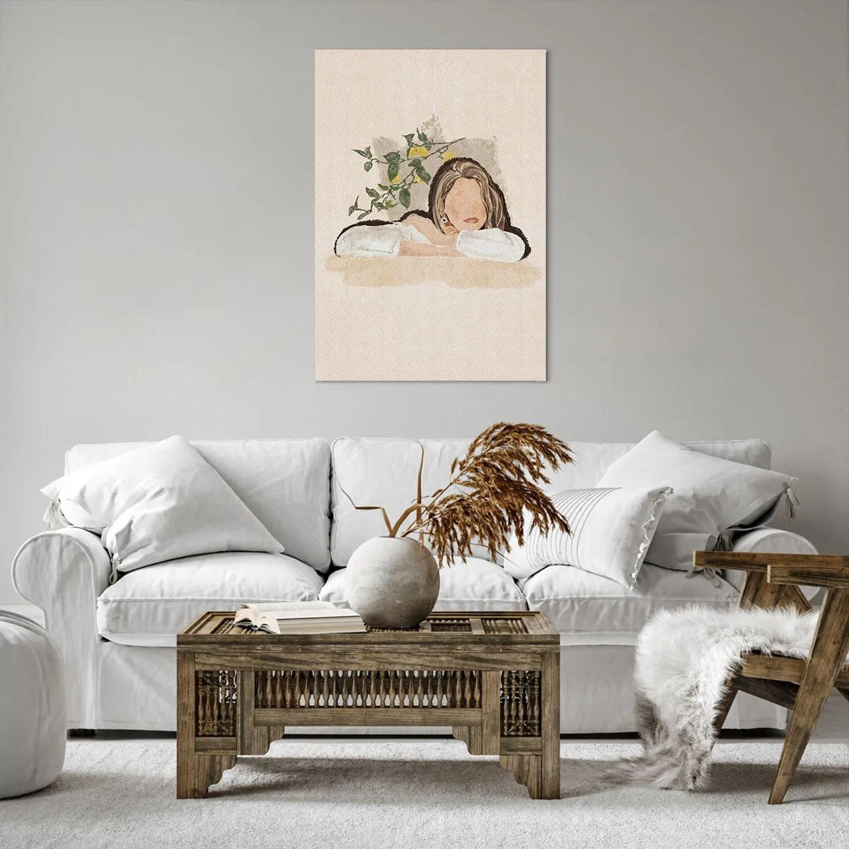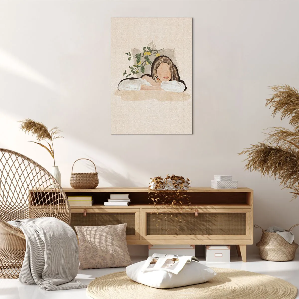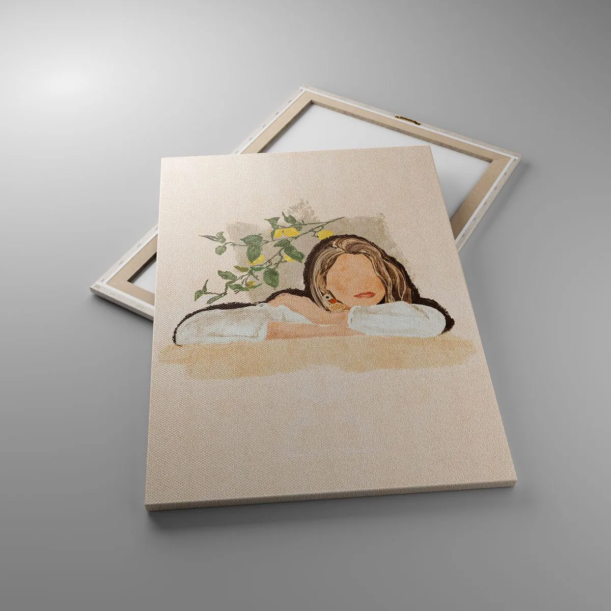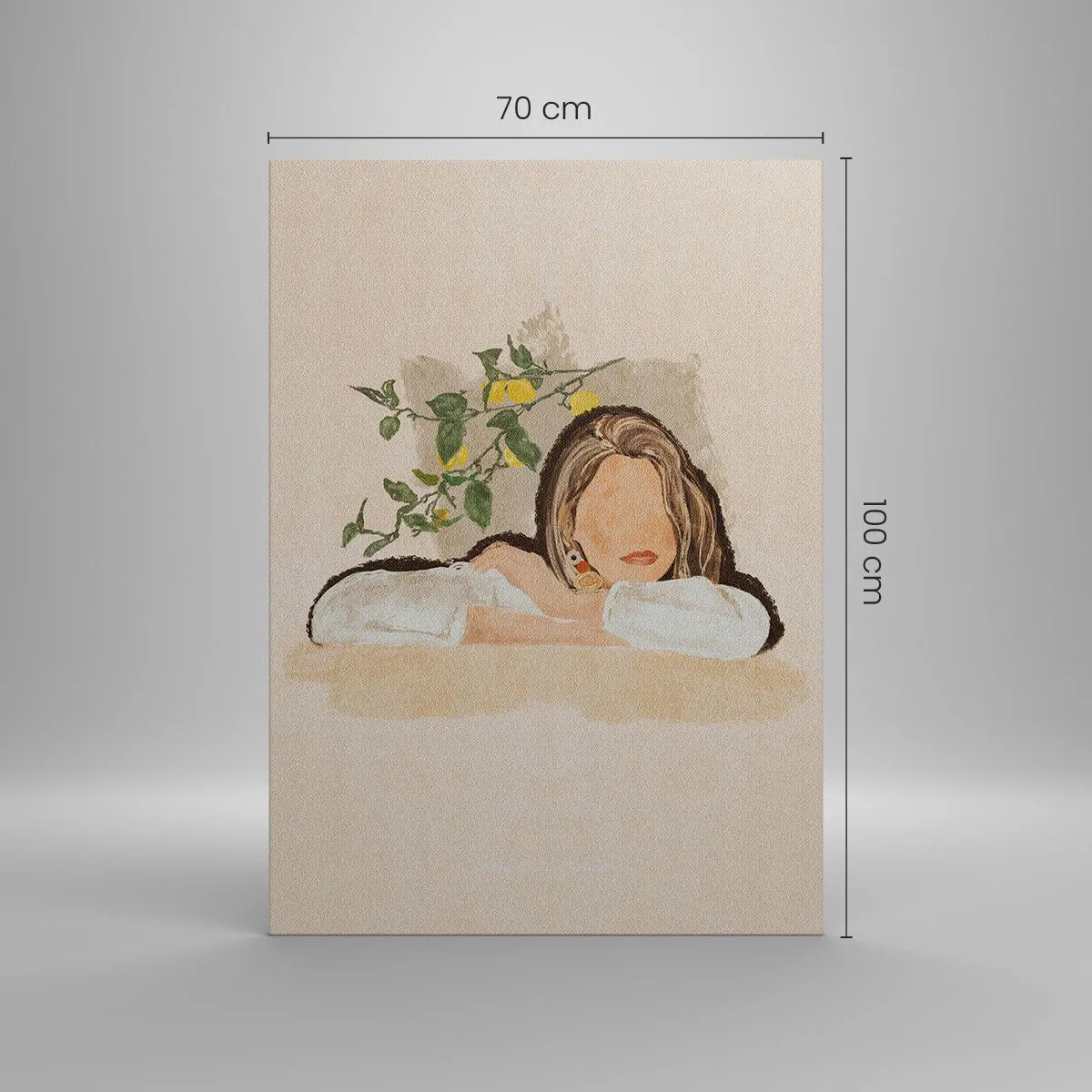 A tela é esticada na moldura. Os lados e bordas são impressos para criar uma continuação da imagem. O quadro está pronto para ser pendurado na parede. Cada produto tem um gancho ligado à moldura e um conjunto de montagem (parafuso + cavilha).