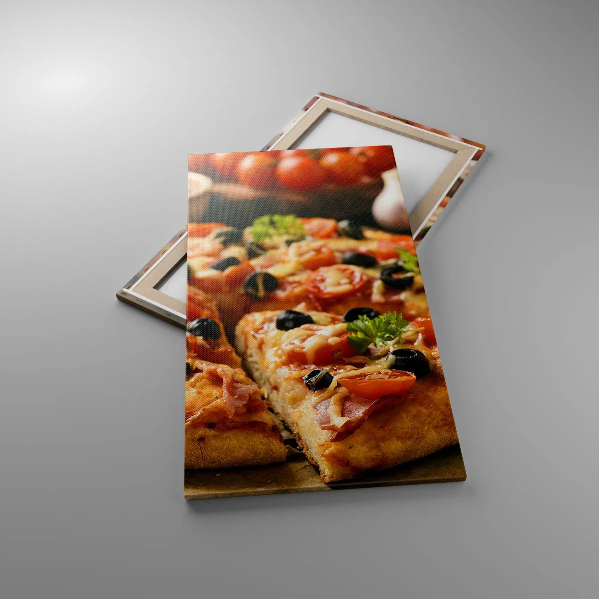 A tela é esticada na moldura. Os lados e bordas são impressos para criar uma continuação da imagem. O quadro está pronto para ser pendurado na parede. Cada produto tem um gancho ligado à moldura e um conjunto de montagem (parafuso + cavilha).