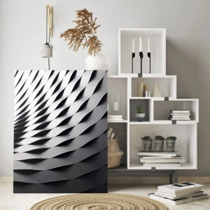O quadro em vidro é feito de vidro de 4mm de espessura. As bordas do vidro têm um corte trapezoidal fosco. O quadro é segura de usar e pronto para pendurar – tem ganchos de metal presos à parte de trás do quadro e e espaçadores de espuma para regular a distância uniforme do quadro da parede.