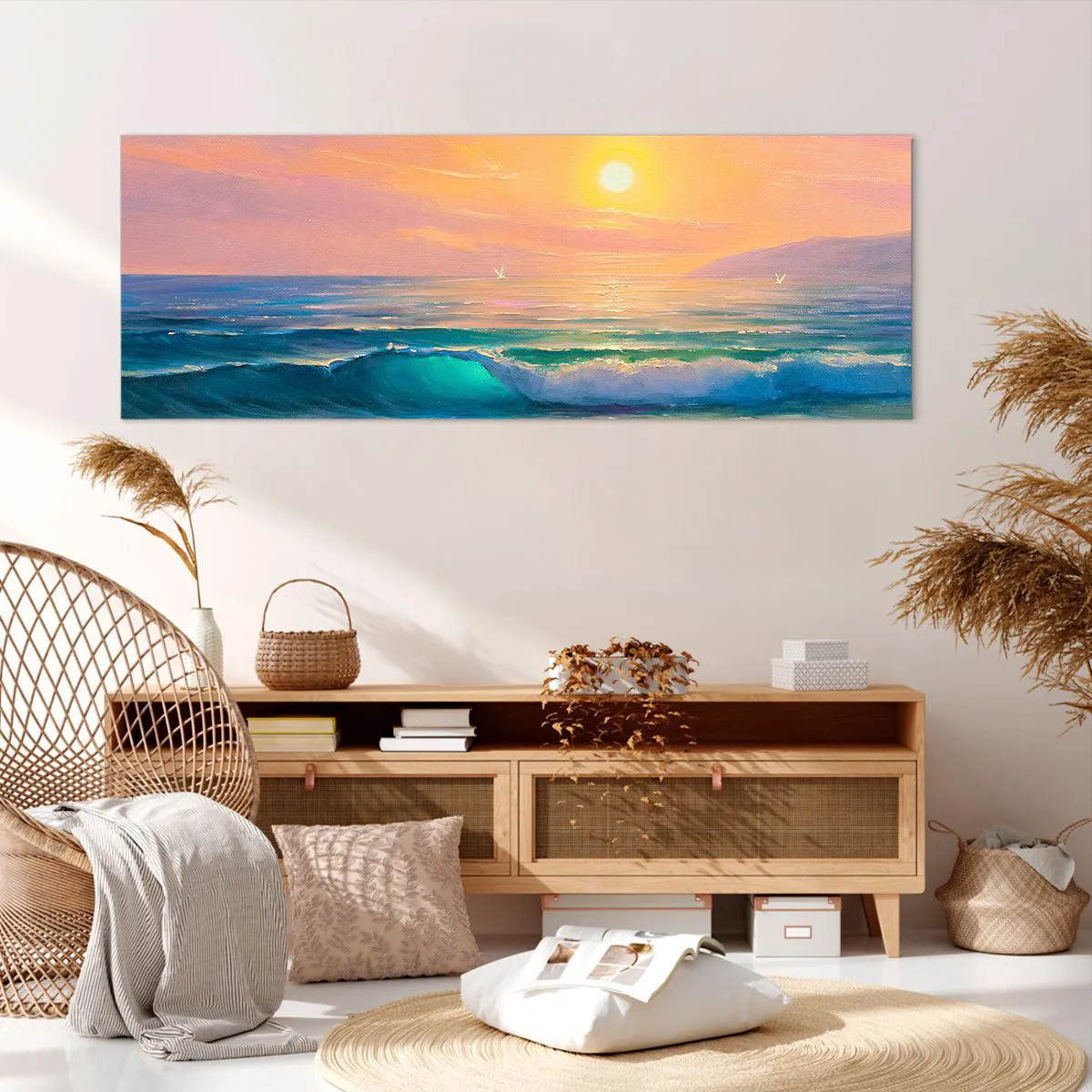 Quadro em tela - O canto turquesa das ondas - 140x50 cm