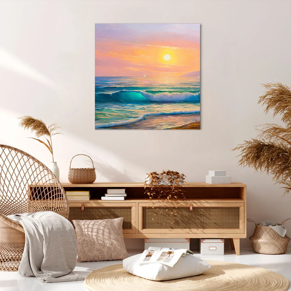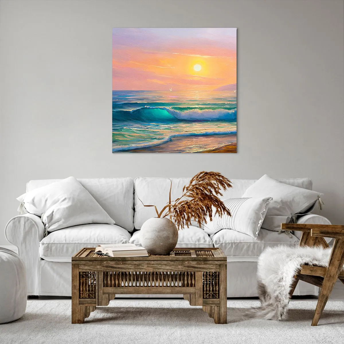 Quadro em tela - O canto turquesa das ondas - 70x70 cm
