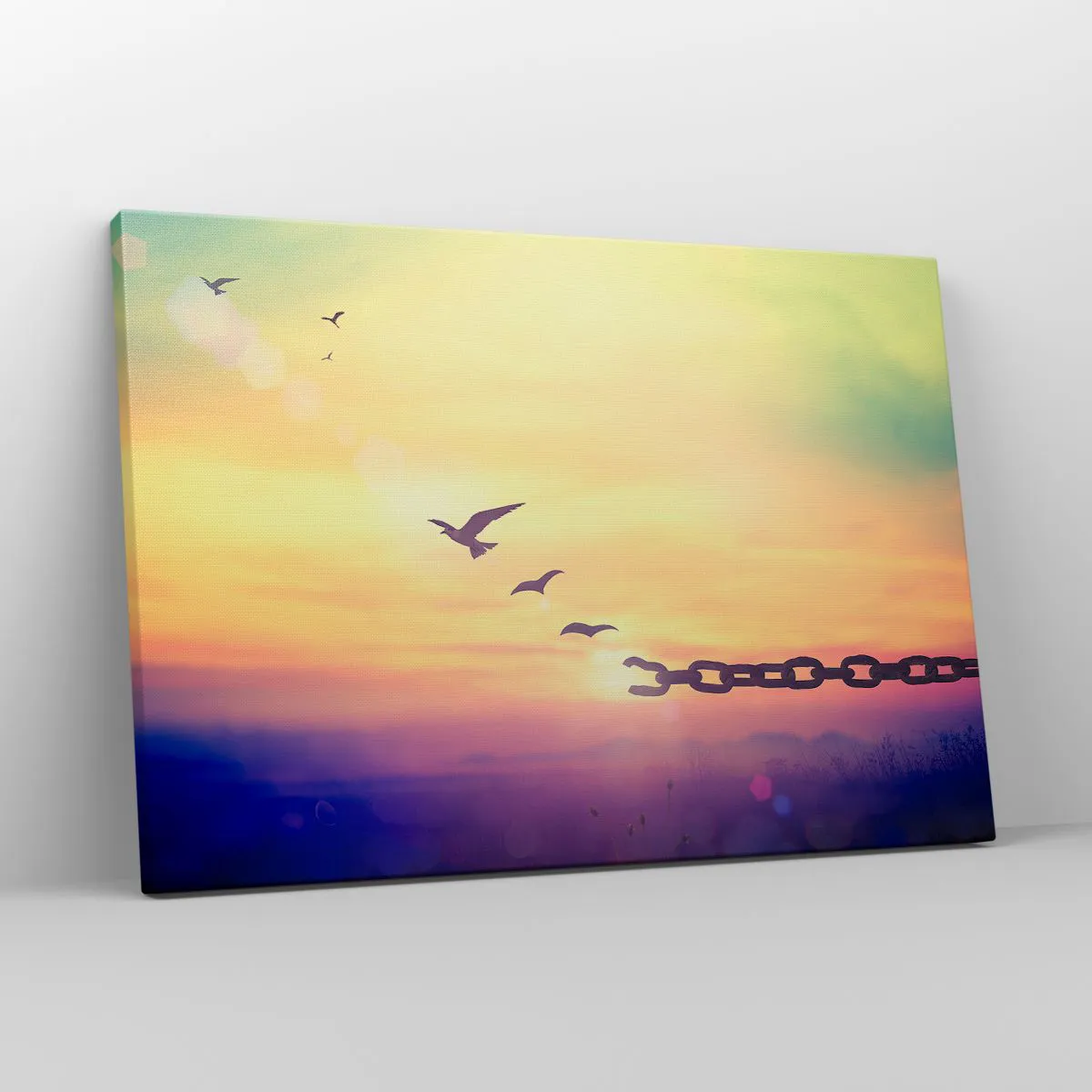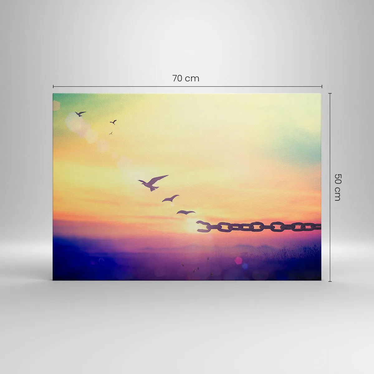 Quadro em tela - Símbolo de liberdade com pássaros e uma corrente quebrada - 70x50cm - A vitória da liberdade - Decoração de parede moderna para a sala de estar e quarto ARTTOR