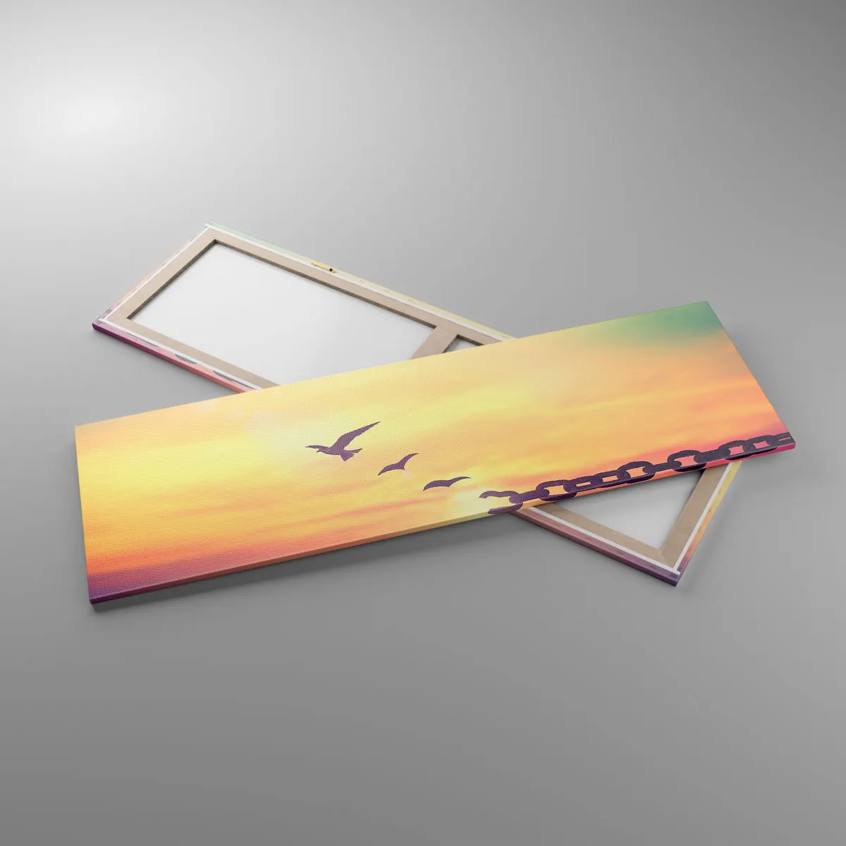 A tela é esticada na moldura. Os lados e bordas são impressos para criar uma continuação da imagem. O quadro está pronto para ser pendurado na parede. Cada produto tem um gancho ligado à moldura e um conjunto de montagem (parafuso + cavilha).