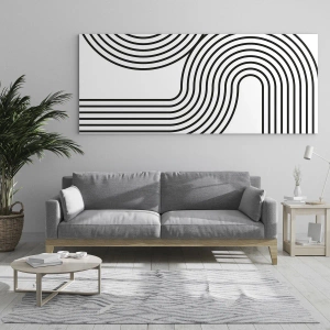 Quadro em vidro - Gráficos em preto e branco com linhas paralelas curvas - 70x50cm - Na curva - Decoração de parede moderna para a sala de estar e quarto ARTTOR