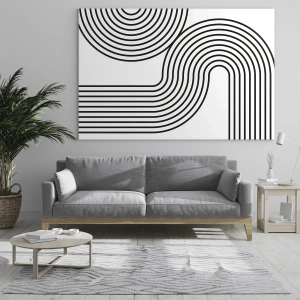 - Gráficos minimalistas com linhas pretas em formato curvo. Uma composição rítmica ideal para interiores modernos e espaçosos.